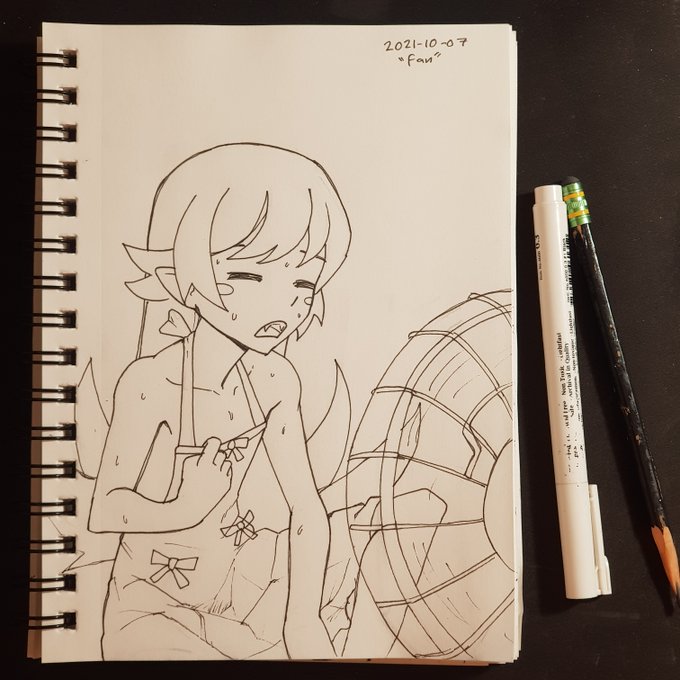 Inktober day 7: Fan Sunny days are the enemy of vampires #inktober2021 #inktober2021day7 #忍野忍