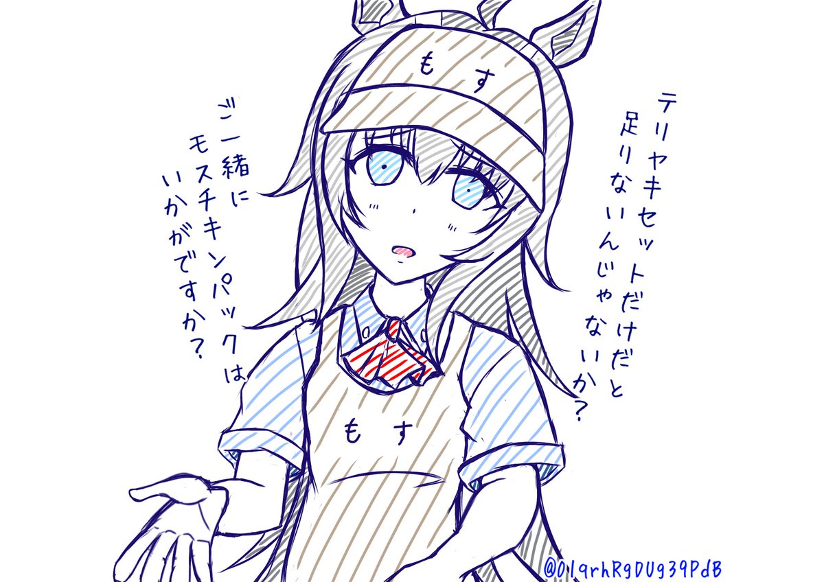 #ウマ娘版深夜のお絵描き60分一本勝負 #ウマ娘版深夜のお絵描き60分一本勝負_20220720 #ウマ娘 #ウマ娘プリティーダービー お題【ハンバーガーショップのバイト】 #ハンバーガーの日 お一人様に10本入りを薦めてくるオグリ