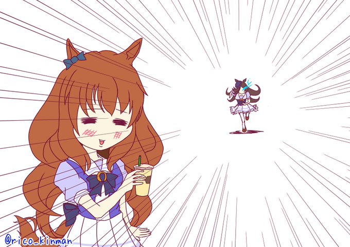 #ウマ娘版深夜のお絵描き60分一本勝負 #ウマ娘版深夜のお絵描き60分一本勝負_20220803 #ウマ娘 #ウマ娘プリティーダービー お題【はちみー🧋】 #はちみつの日 はちみーをこんな暑い日に持ち歩くと、ぬるくなっちゃう……!