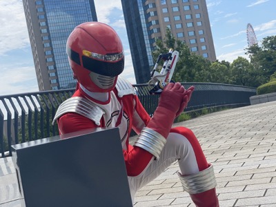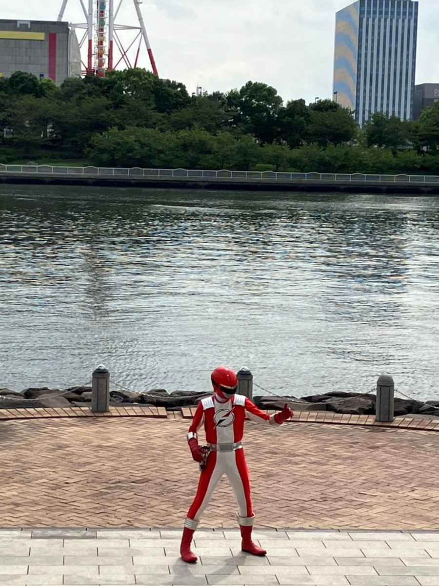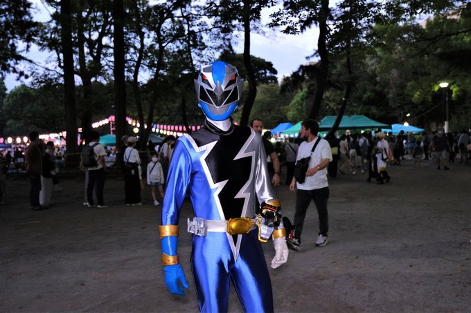 遅報!OTAふれあいフェスタ お祭り会場までの移動1発目のピン画像からの祭り会場でのtetsuさんとツーショからのグラウンドで! #コス博 #OTAふれあいフェスタ #リュウソウブルー 📷by @seshr_117さん