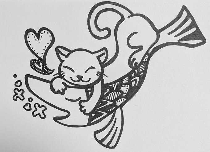 お絵描き楽しい🥰🙌✨ 至福や〜♫ #イラスト #ゆるいイラスト #アナログ絵 #イラスト好きな人と繋がりたい #絵柄が好みって人にフォローされたい #絵描きさんと繫がりたい #海の生き物 #人魚姫 #モノクロ