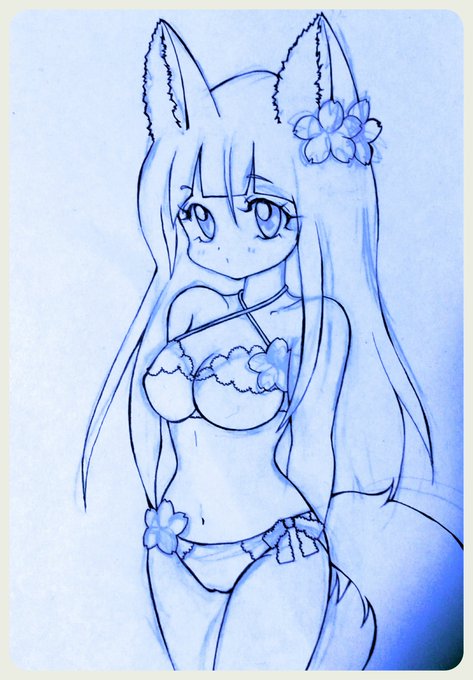 #天華百剣 #天華百剣お絵かき部 8月1日がおっぱいの日で、8月2日がぱんつの日らしいので、密かに下着狐ヶ崎ちゃん描いてたのに、もう3日だし(´;ω;`)(色つけたら、再投稿しますー(´;ω;`))