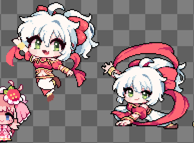 기본 도트는 완성! 이제 파츠 분리해서 4방향+애니 만들고 게임에 적용하면 된다 twitter.com/riel_9999/stat…