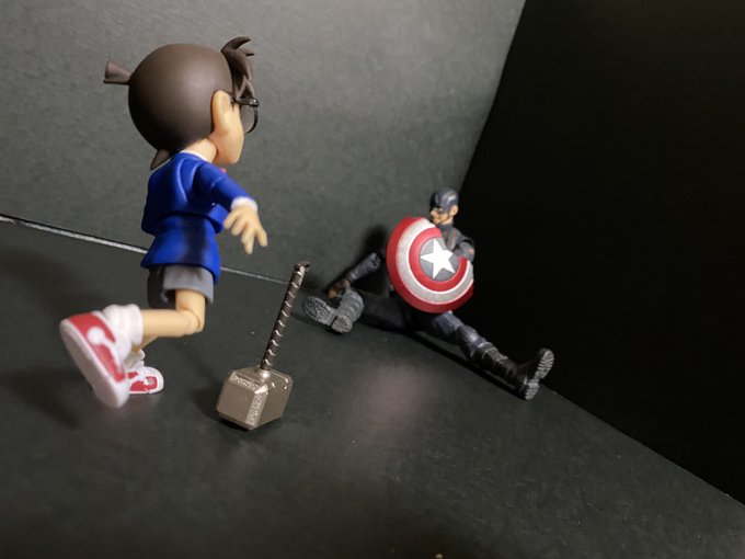 コナン 「おじさん!!受け取って!!」 #オモ写 #キャプテンアメリカ #名探偵コナン