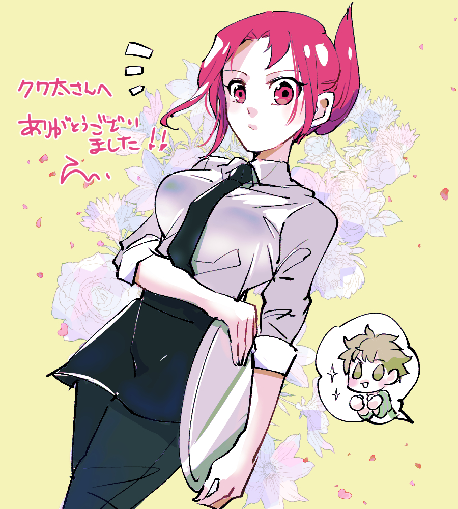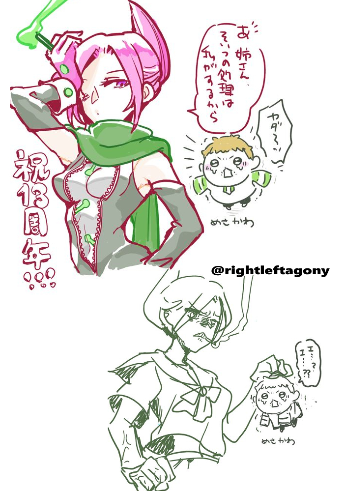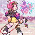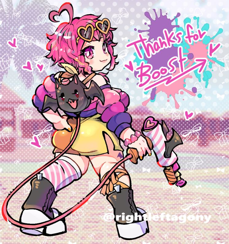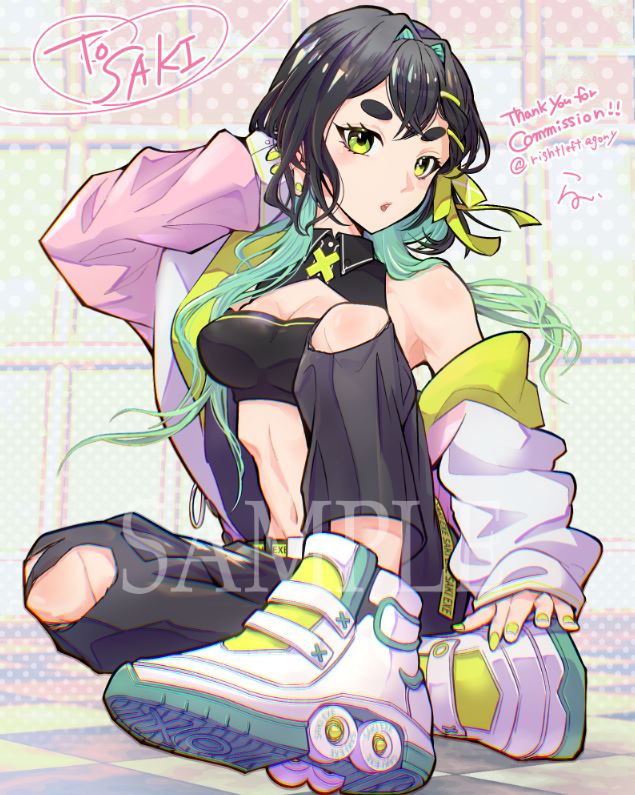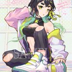 skeb納品しました!お衣装のうち、カッコよくてめっちゃ描きたい欲そそられたコチラを選びました。配色とデザインがポップで可愛い!太い眉もチャームポイントですね👍ご依頼ありがとうございました✨✨ skeb.jp/@rightleftagon… #Skeb #Commission