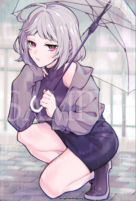 skeb納品いたしました!ダウナー系のお姉様という事でしたので、雨の中傘をさして佇んで頂きました。脱げかかってるカーディガンと、モノトーン調の色彩の中際立つ紅い瞳が色っぽくて素敵なキャラデザでめっちゃ好きです😍 ご依頼有難うございました!! skeb.jp/@rightleftagon… #Skeb #Commission