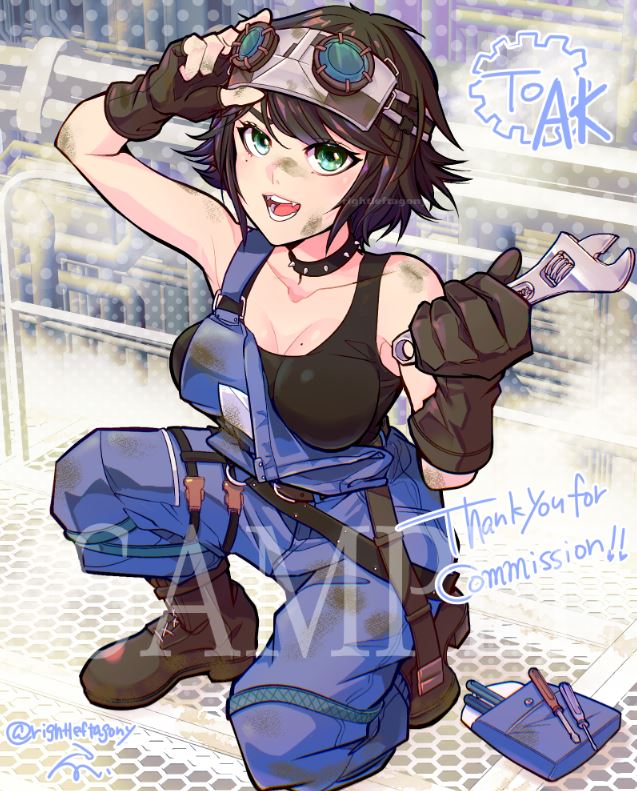 skeb納品しました!メカニックさんとのことで、それっぽいシチュにしてみました。油汚れは非表示出来る仕様です!腰に下げたポシェットの中身はきっと沢山の工具なんだろうなとか、色々想像をめぐらすのが楽しかったです✨ご依頼有難うございました! skeb.jp/@rightleftagon… #Skeb #Commission