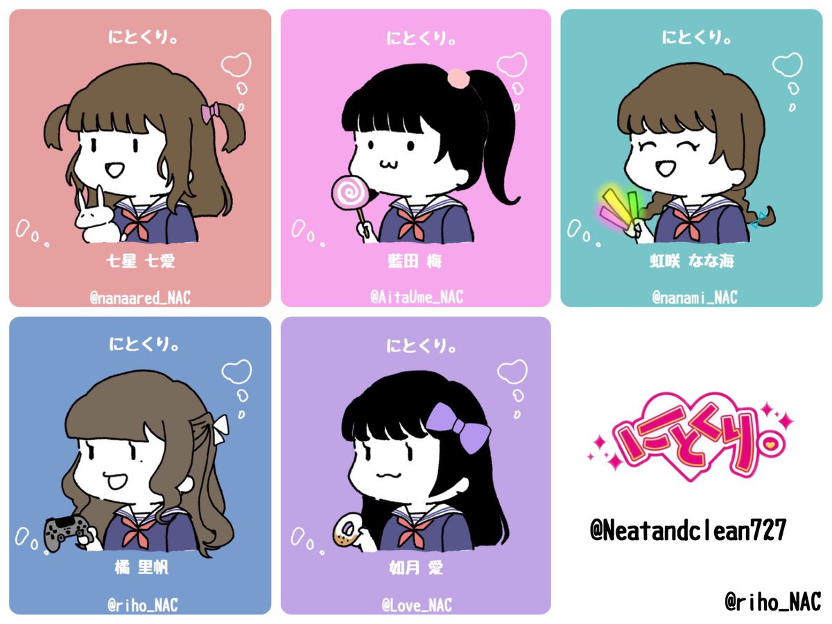 にとくり。学園 🏫💗 . 髪型はそれぞれの印象的な髪型で作ったから昨日と違う人ごめんなさい❕🙇♂️ . . #にとくり #アイドル #イラスト