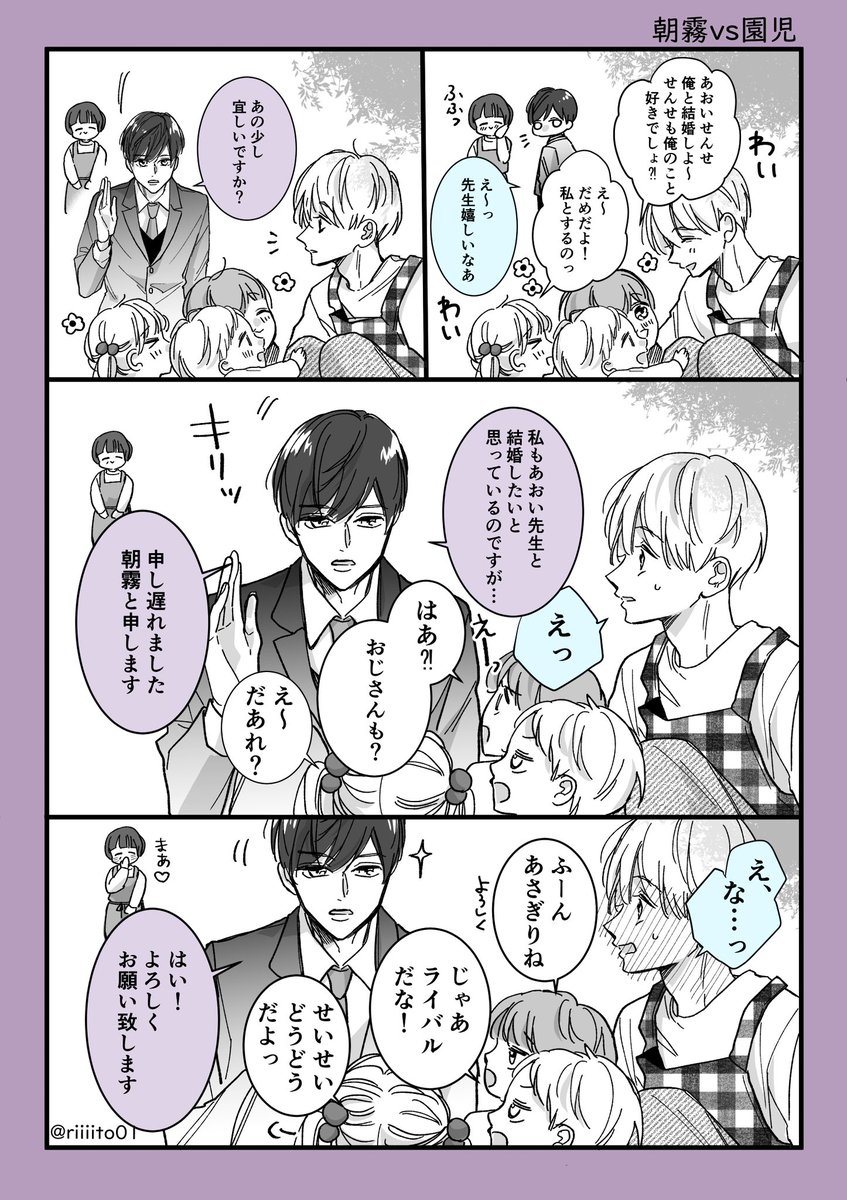 園児と真剣にライバルになる朝霧 #朝霧社長とあおい先生 #創作BL