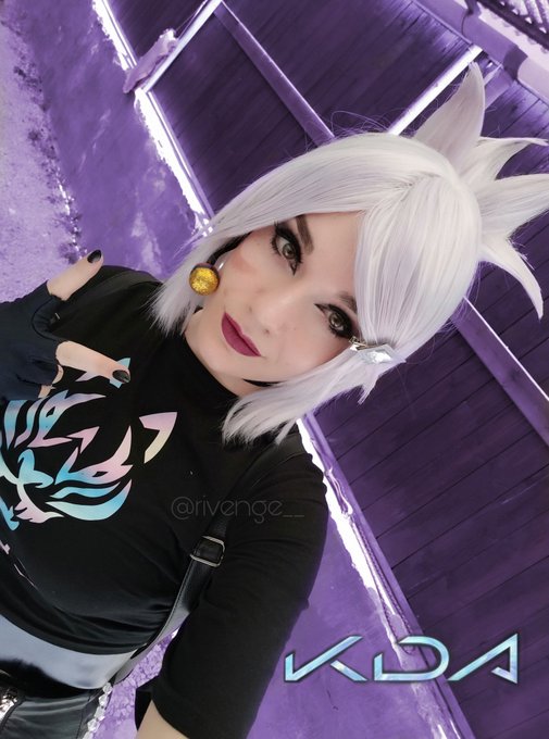 It's KDA RIVEN here (original outfit by me) 👀💜 How are you cuties? #LeagueOfLegends #Rivencosplay #cosplayer #cosplay #LeagueOfLegendsFanArt #drawing