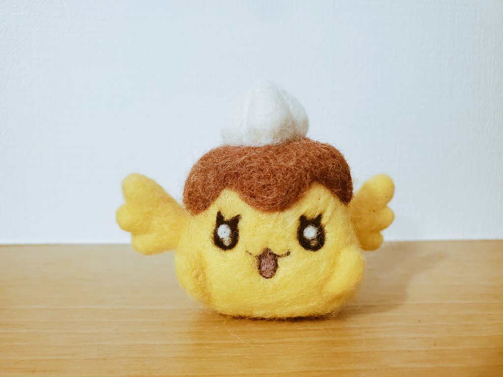 ひぃ~なんとか4話放送までに間に合ったぞ…! 3話に一瞬だけ登場したプリンのレシピッピちゃん🍮 上に乗ってるクリームがいっちばん難しかった!あとおてて! #羊毛フェルト #デパプリ #レシピッピ
