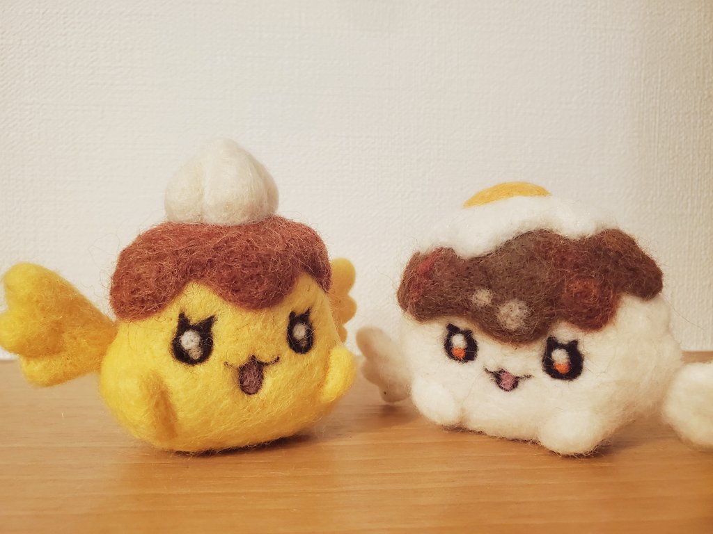 からあげのレシピッピできたよー! レシピッピ共通パーツの羽とハートのクオリティが上がってきたw #羊毛フェルト #デパプリ #レシピッピ