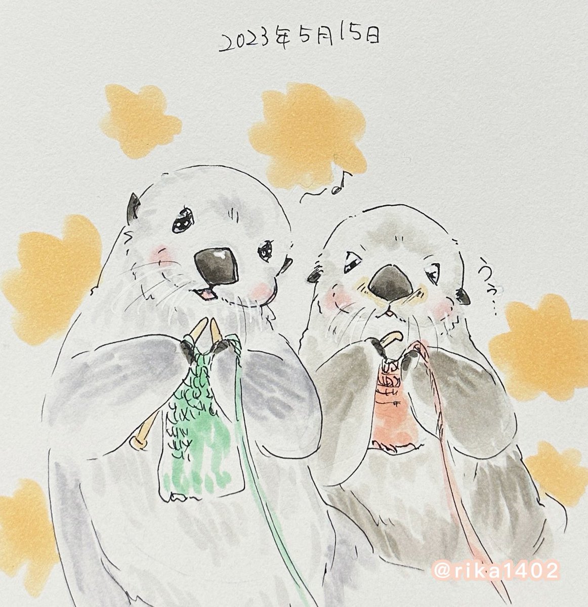 メイちゃんお誕生日おめでとう! 19歳!! 私はメイちゃんのここニ、三年しか知らないけど、毎秒毎分毎時毎日可愛いを更新していくね!!私はメロメロです😍 これからもキラちゃんと一緒にのんびりと楽しく沢山食べて長生きしてね🥰🦦🦦 #ラッコのメイちゃん #ラッコのキラちゃん #マステ絵