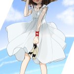 夏っぽい白ワンピ麦わら帽子の佐久間まゆちゃん