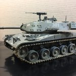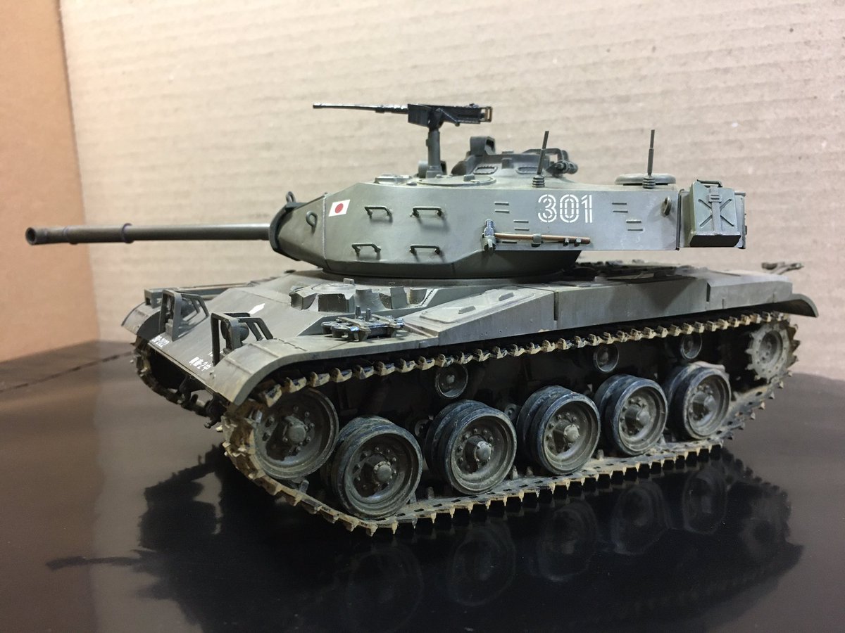 タミヤM41に61式戦車の90㍉砲を換装した架空戦車。米ではM49だっけw最初普通に作る予定だったけど、余ってた90㍉つけたらことのほか似合ったので、そのまま装着w元より砲が太くなったので見栄えは良くなりました。昔のタミヤ戦車は何も考えずに遊べて楽しいですわw #今月作ったプラモ晒そうぜ