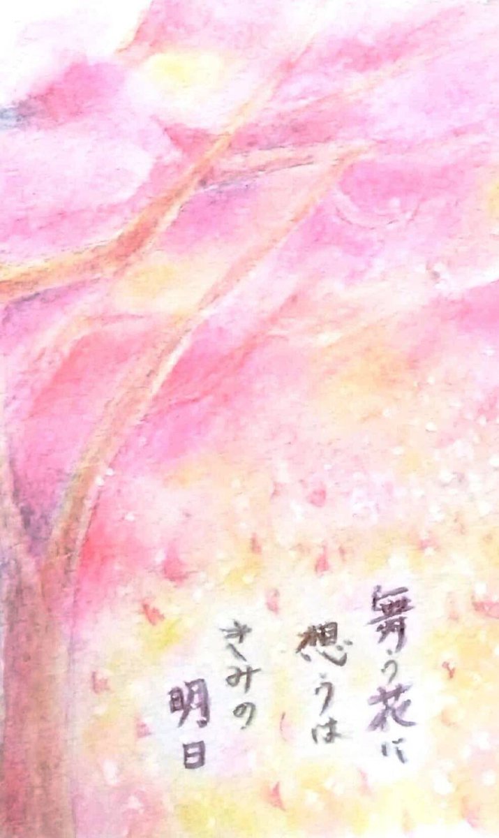 舞う花に 想うは きみの明日 #イラスト #詩 #IYN企画に参加します 5月開催のLOVE展2に参加します。見ていただいた皆様に愛💓をお届けできたらいいなと思います(^^)よろしくお願いします。 イラスト 猫又多座🐈言葉 莉艶子