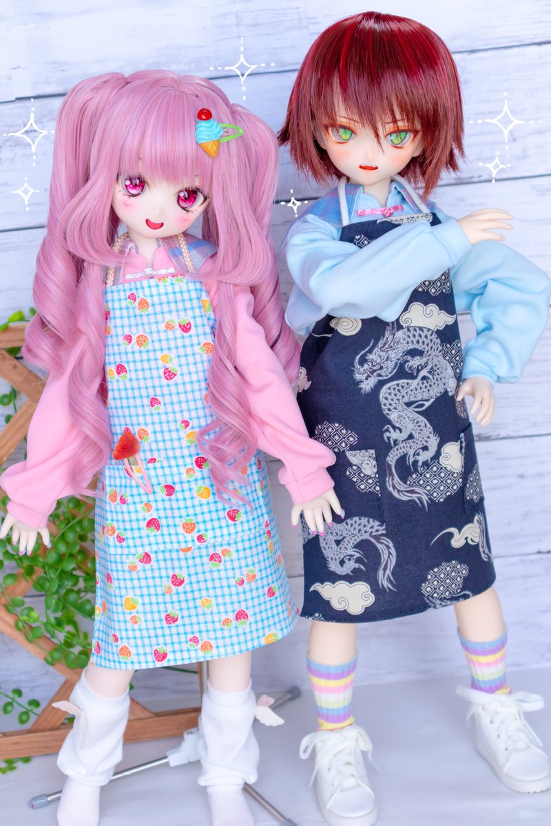 うちのけんとにドラゴン柄の家庭科エプロンを着てほしすぎて、裁縫能力ないのに手縫いに挑戦してみた😂どっちも100均の布とヒモ!それぞれ自分で選んで自分で作ったという設定なのでガタガタでもオーケーです(濡れ衣) #MDDはいいぞ