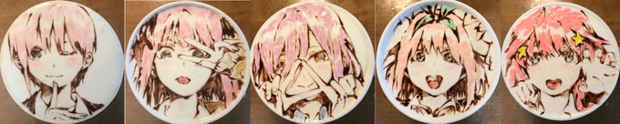 30 102 【五等分の花嫁】 五人分まとめてがこちらになります #きまぐれラテアート #ラテアート #latteart #五等分の花嫁 19/01/11 23:16