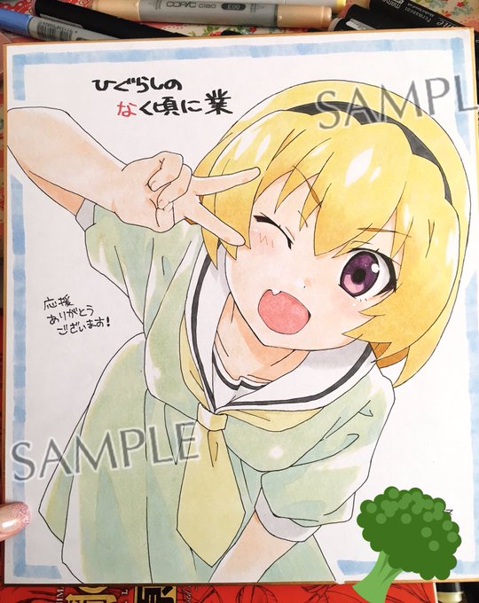 316 1089 RT>色紙プレゼント用の沙都子を描かせていただきました、明日締切です🙇♀️ これからも #ひぐらし業 #ひぐらし卒 応援何卒よろしくお願いいたします~! 実際の色味はこちらの写真が近いです¨̮ !(掲載許可済) 21/04/07 22:55