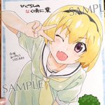 RT>色紙プレゼント用の沙都子を描かせていただきました、明日締切です🙇♀️ これからも #ひぐらし業 #ひぐらし卒 応援何卒よろしくお願いいたします~! 実際の色味はこちらの写真が近いです¨̮ !(掲載許可済)
