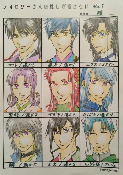 アナログ既出&証明写真絵で恐縮ですが…(そして同じ向き😅)意外と数だけは描いてたらしい(そして上達はしない) コス写も後であげたい~。 #繋がらなくていいから俺のネオロマンスキャラを見てくれ