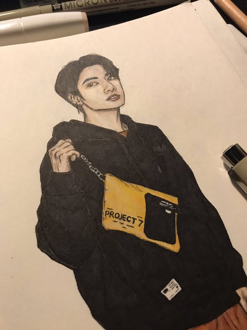 1 9 Первый рисунок маркерами. Есть к чему стремиться #jk #jungkook #bts #btsfanart #jkfanart #fila #fanart #kpop 20/10/18 00:11