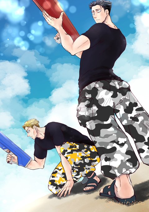 マメ科さんの素敵ツイを拝見し、居ても立っても居られず描かせていただきました、元呪i詛7️⃣と彼ジャー伊♀さんです。!マメ科さん掲載許可してくださってありがとうございます😊(7️⃣は至宝のジャージ姿を参考にしております) twitter.com/mame1285/statu…