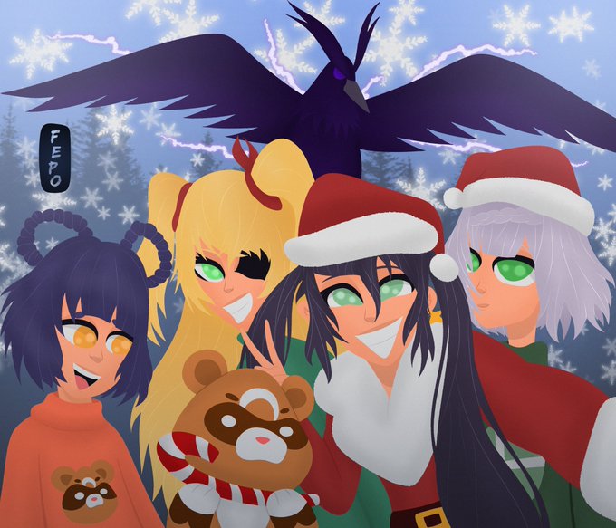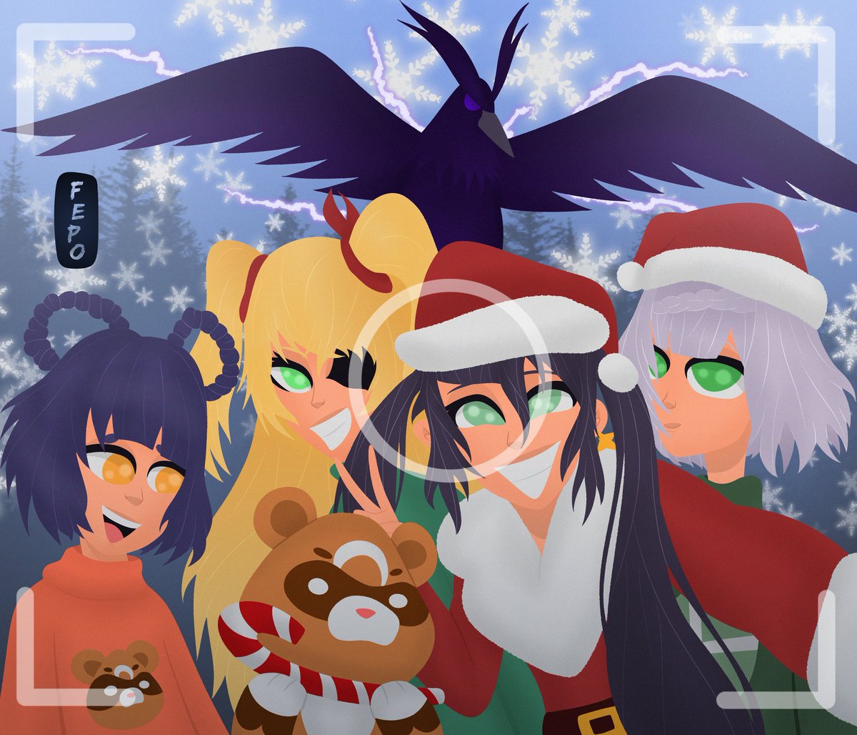 algum fã de genshin impact por aí? meu time principal tirando selfie de natal! espero que tenham gostado! #genshinimpact #genshinimpactfanart #medibang #madewithwacom #xianglingfanart #monafanart #noellefanart #fischlfanart