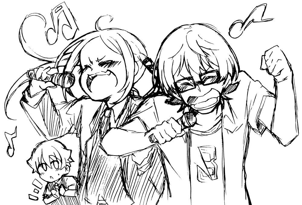 #このタグを見た人はラフ画とその完成絵を見せる 複数や集合イラスト時のラフはアナログが多め(全体が見やすい&何個も描く時すぐにさっと出来るので) ある程度 頭で決めた描きたいものを元に幾つもラフを描く。 また明確にテーマや人物等の動きもあればト書きする。 …という感じでラフを描いてます。