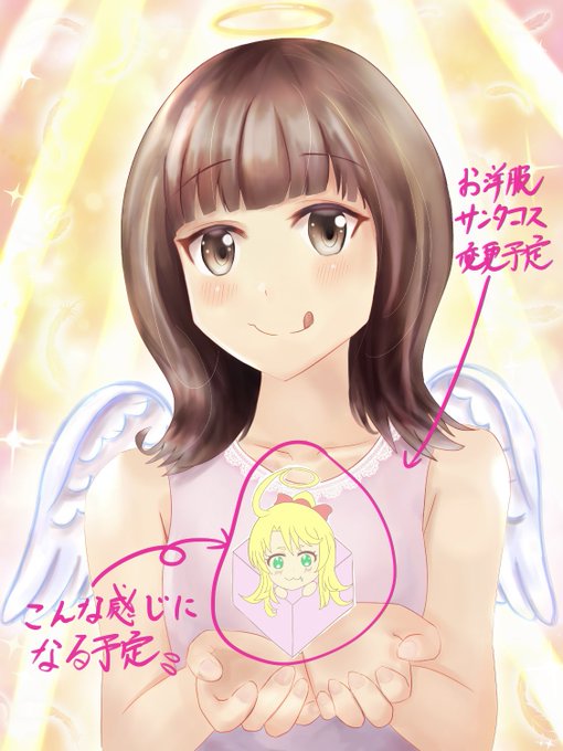 天使の鬼頭明里さんイラスト 続きを描こうと思い追加分を ざっくりとイメージし下書き… もう冬で寒そうだしクリスマス🎄 近いのでサンタコスに変更予定です🤶 姫坂乃愛ちゃんはプレゼント箱🎁から 覗き込んでいる感じにしようと… #絵描きさんと繋がりたい #イラスト好きな人と繋がりたい
