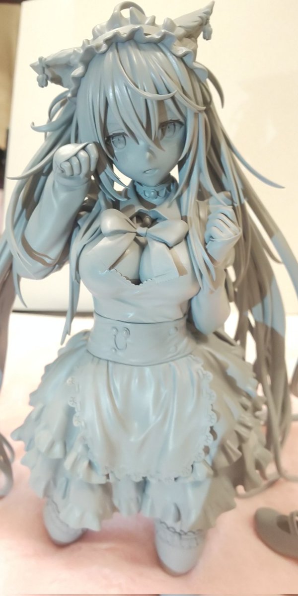 看板娘のメイド猫さんフィギュア監修しました✨フリルや下着細部まで作り込み凄😳上下キャストオフもあってえちえちです❣️着色仕上り期待