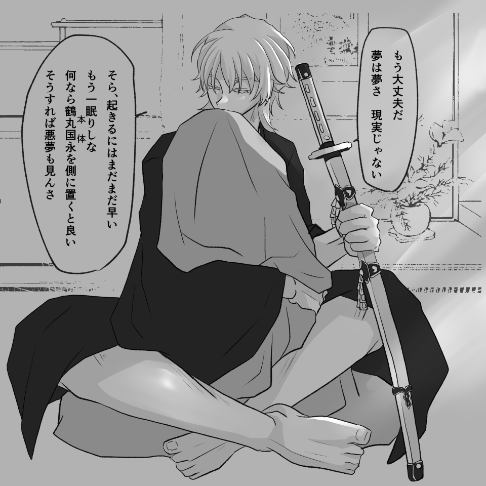 ※鶴さに 夜中眠っていたら主の気が乱れたので本体持って来てくれた鶴丸さん 恋刀だけが感じ取れる異変ってロマンですよね!ね! この間私が悪夢見た時にこうして欲しかったという妄想