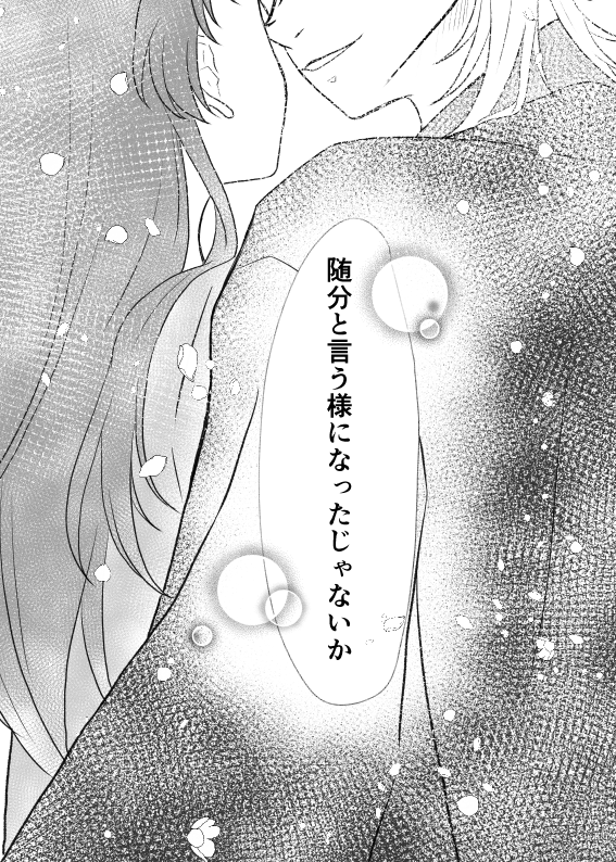 6 46 ※鶴さに 顔有創作🚺審神者います 初めは余裕綽々でキスをねだる鶴丸さんを描こうとしていたのに、いつの間にか甘えてちゅーする鶴丸さんになってしまった アルェ~? 23/03/14 20:09