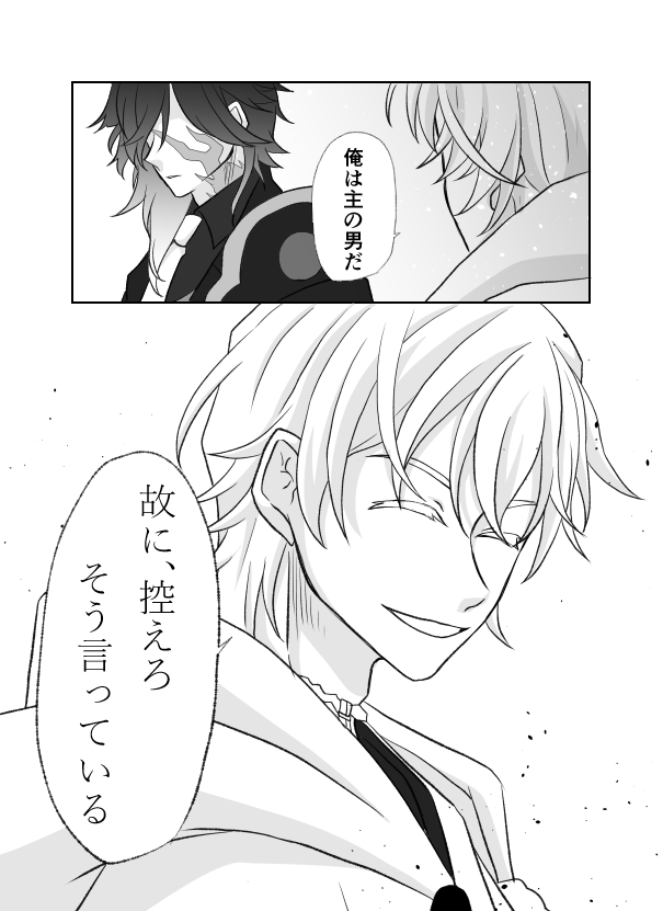 ※鶴さに 審神者描写なし 実休さんから、審神者が甘い香りがしたというのを聞いて釘を刺す鶴丸さん 初め「俺の女だ」と言わせようかと思ってたのですが、何となくこっちの方がうちの鶴さにの鶴さんっぽいかなって……!