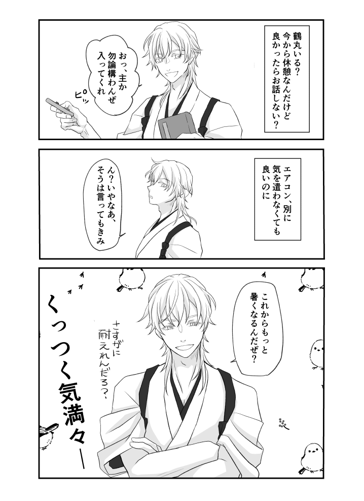 4 8 ※鶴さに 審神者姿描写なし 暑がりの審神者の為にエアコンを入れてくれる鶴丸さん 23/06/29 18:17