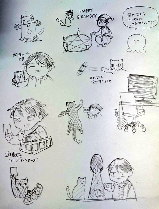 2 8 #猫さんとCさん 放送見ながら描いたらくがきをぺたり 21/10/30 23:15