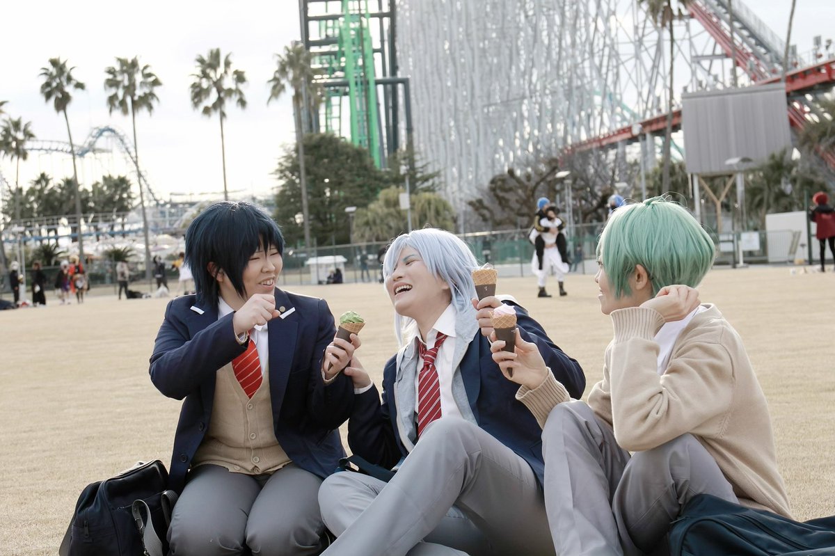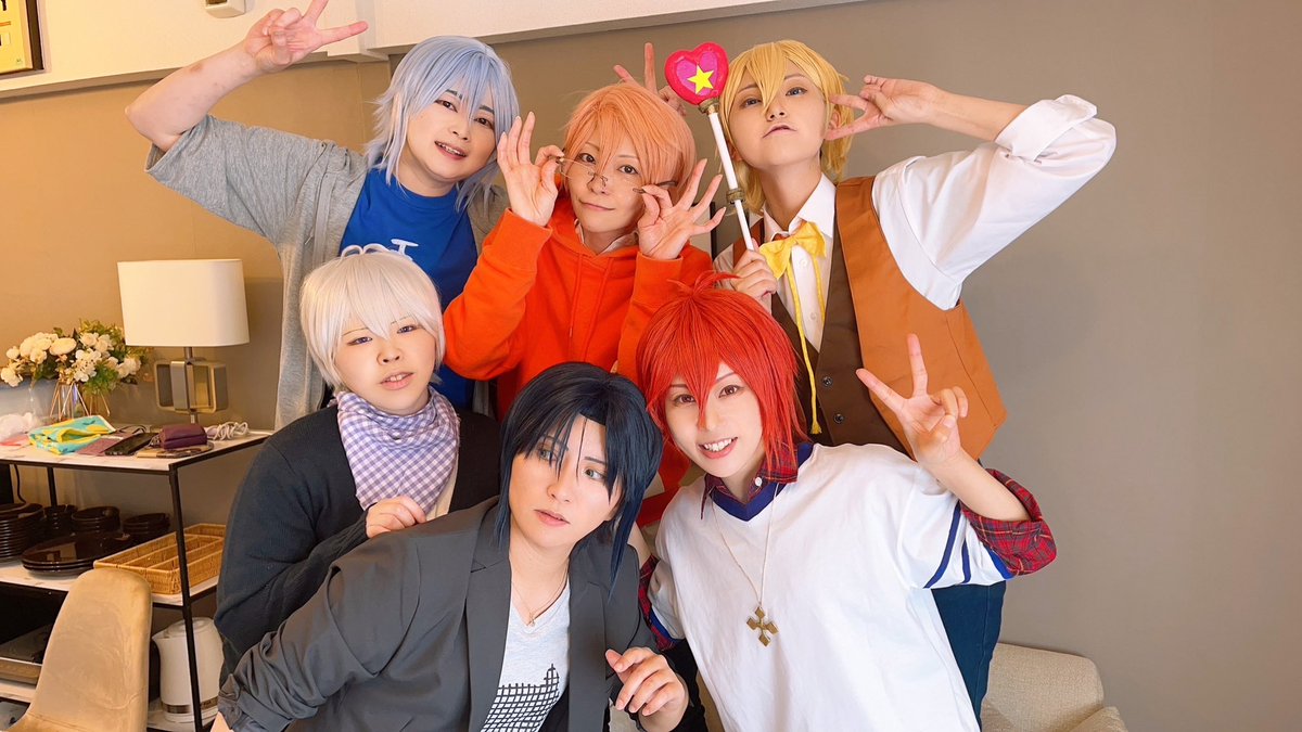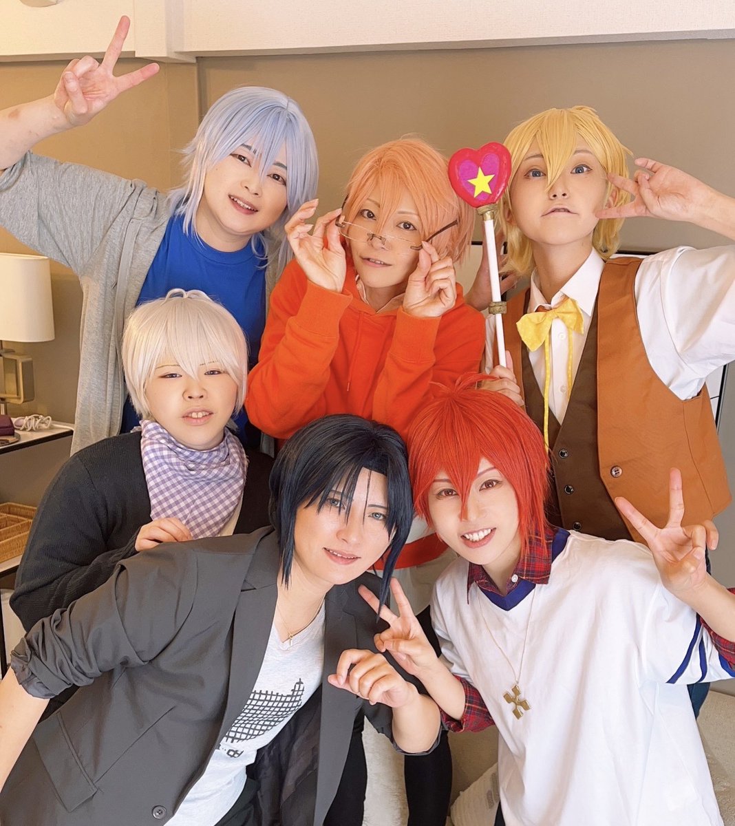※コスプレ※ 昨日の集合写真、めっちゃ可愛い… ヤマさんは本体のみですw 一織→皆川 三月→@motimoti_cone 環→@haruru300 壮ちゃん→@yuki_kgmikan ナギ→@tunatuna_bllove 陸→@i7oshino_mito Photo &ヤマさん本体提供→@juka_tachibana