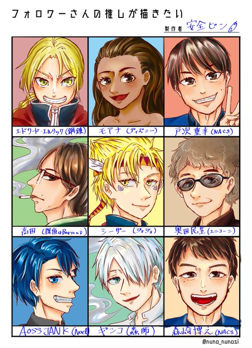 5 14 #フォロワーさんの推しが描きたい お待たせしました〜‼ 枠が余ったので下段三人は私の推しです☺️よろしくお願いします リクエストありがとうございました〜🙌🙌 20/04/30 22:15