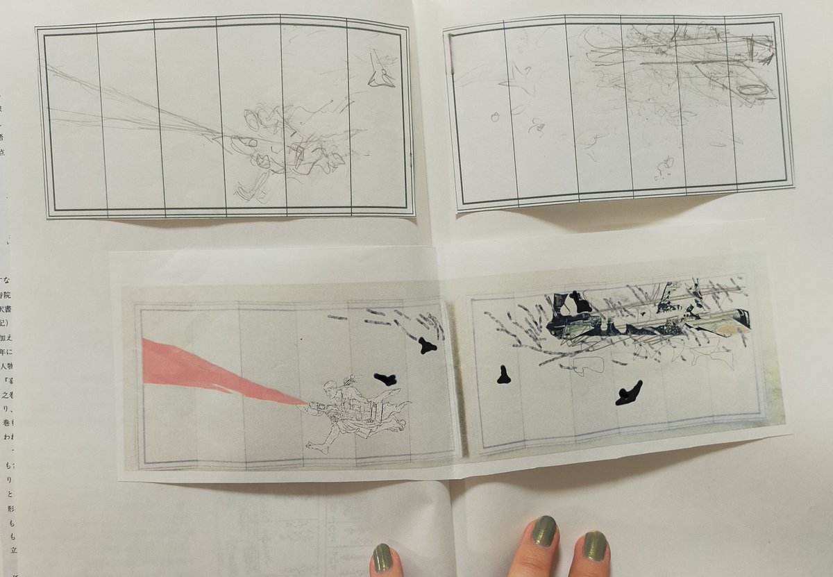 #このタグを見た人はラフ画とその完成絵を見せる 4枚目山田哲平さん撮影です 模型を買って自分でコンロで燃やそうと思ったんだけど、詐欺にあって紙ペラ1枚だけ送られて来た思い出。間に合わないので仕方なく想像で描いた。