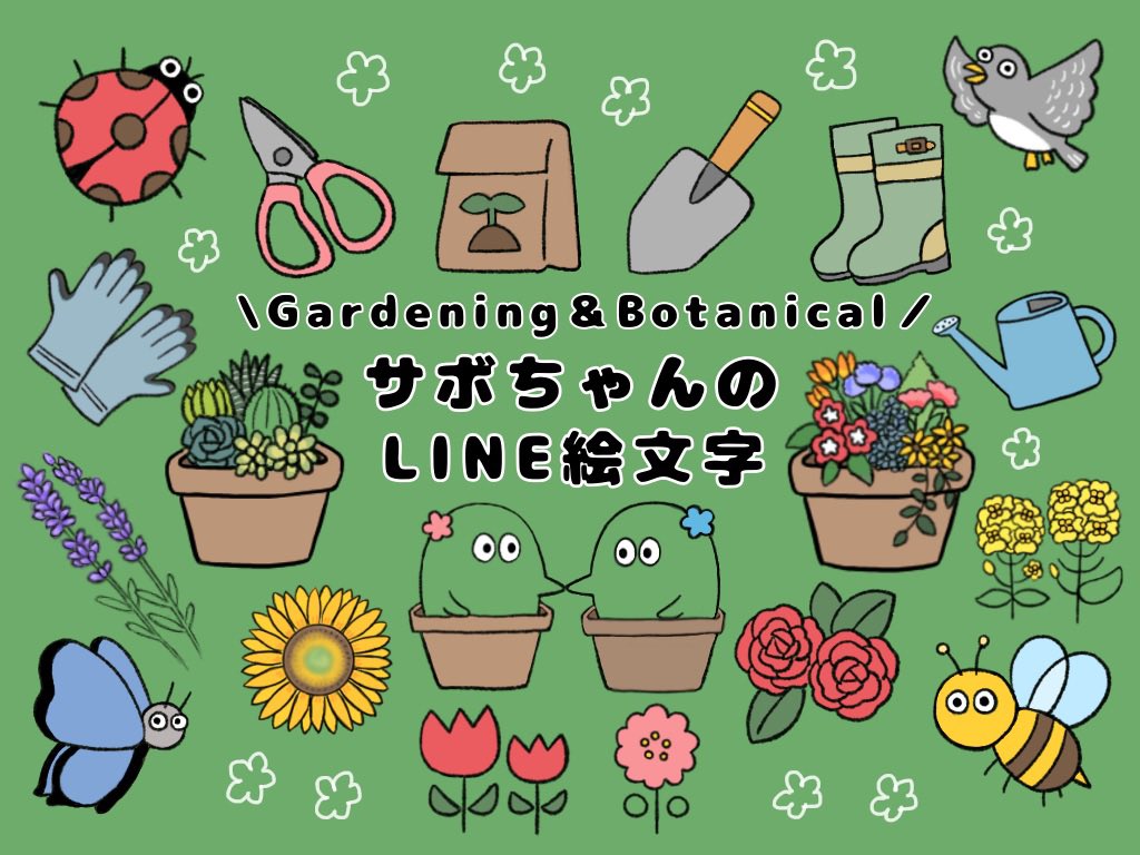 園芸や植物好きの方に使ってほしい サボちゃんのLINE絵文字 発売中です #植物 #園芸 #イラスト #サボテン 🌵 line.me/S/emoji/?id=62…
