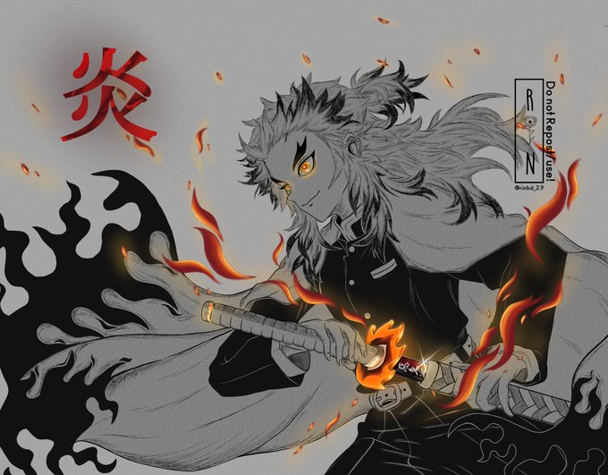 "Set your heart ablaze, go beyond your limits!" -Kyojuro Rengoku🔥 #FANART #rengokukyojuro #kimetsunoyaiba #artidn