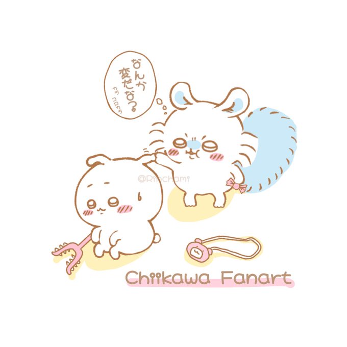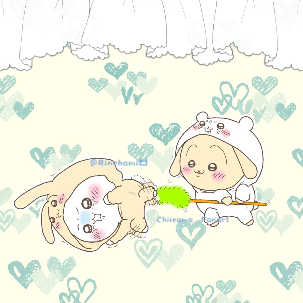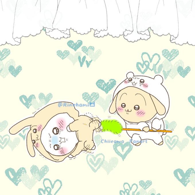 ちいかわ着ぐるみラストを飾るのは、ちいかわ&うさぎです! ちいうさコンビと言えば、もちろんくすぐりモップですね!(個人的見解ですw) ※完全にネタに走ってしまいスイマセンw #ちいかわ #ちいかわファンアート twitter.com/rinchami/statu…