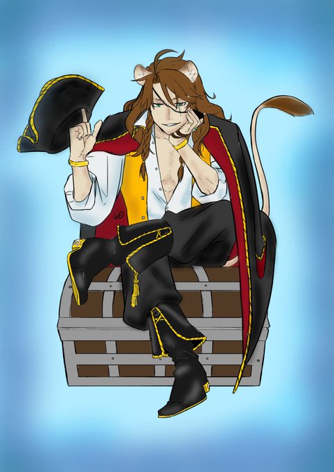リド様(@tw1idly)の塗り絵、海賊レオナをお借りしました。 ありがとうございます。 今回も楽しかった🎵 色塗りはスマホのスケッチツール使用 …iPad欲しい #ツイステハロウィーン #ツイステファンアート
