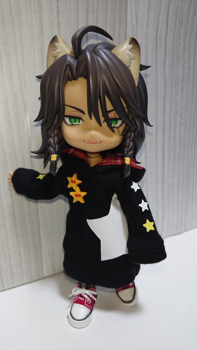 今日は星パーカー×黒チェック×赤スニーカー☺️ ゆったりコーデ🎵 🦁「悪くないな」 背中の星も可愛い♥️ 👕せさみ様 (@sesameyoi) 👖Cワールド様(@hironami_loid) 👟シノクローゼット様(@shino_closet ) #twstドール部 #ねんどろいどどーる #レオナと一緒