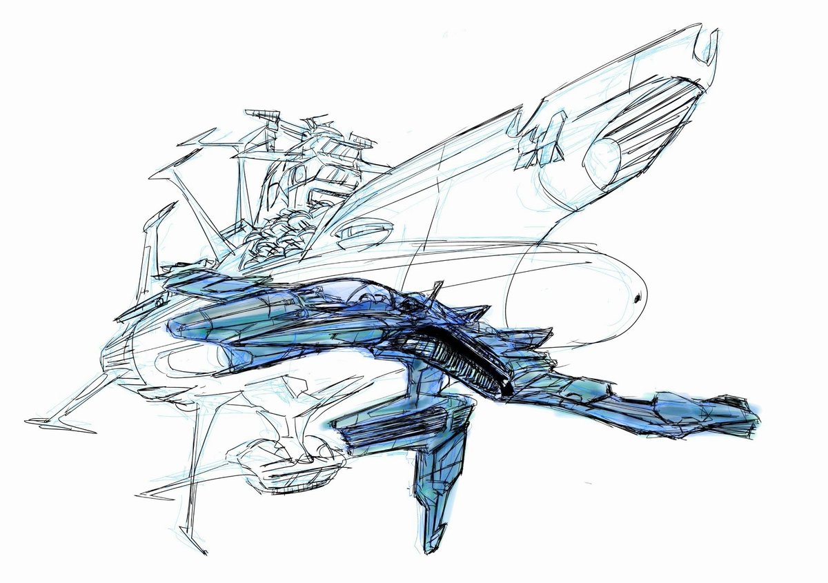 お盆休みの #落書きギルド 実写版ヤマトを漫画にしたくて描いてた頃の #過去絵 下のロボットは完全戦闘モードのコスモゼロ+アナライザー ちょっと加筆した。