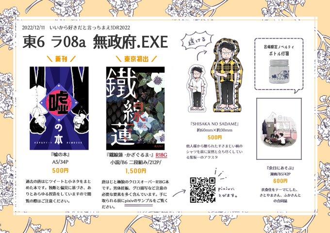 からいっちJB2023 お品書き | 七緒 #pixiv pixiv.net/artworks/10916… 品を書きました もう5日?4日?眠いのでよくわからないですがもうすぐですね 楽しみです