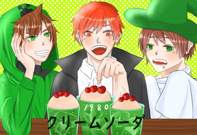 #緑色さんご自由にどうぞ #赤pic #クリームソーダWIN 久々の絵〜 この3人大好き!