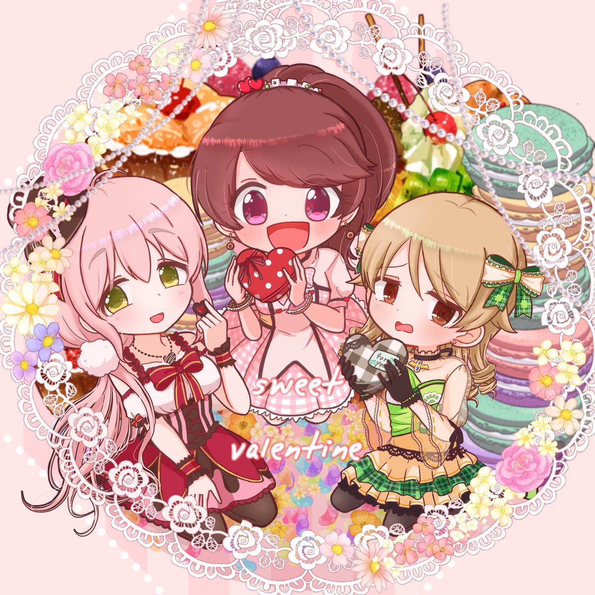 RT こちらのご本に参加させていただきました❗️バレンタイン衣装の法子ちゃん、乃々ちゃん、琴歌ちゃんを描かせていただきました🍩🐿🌼