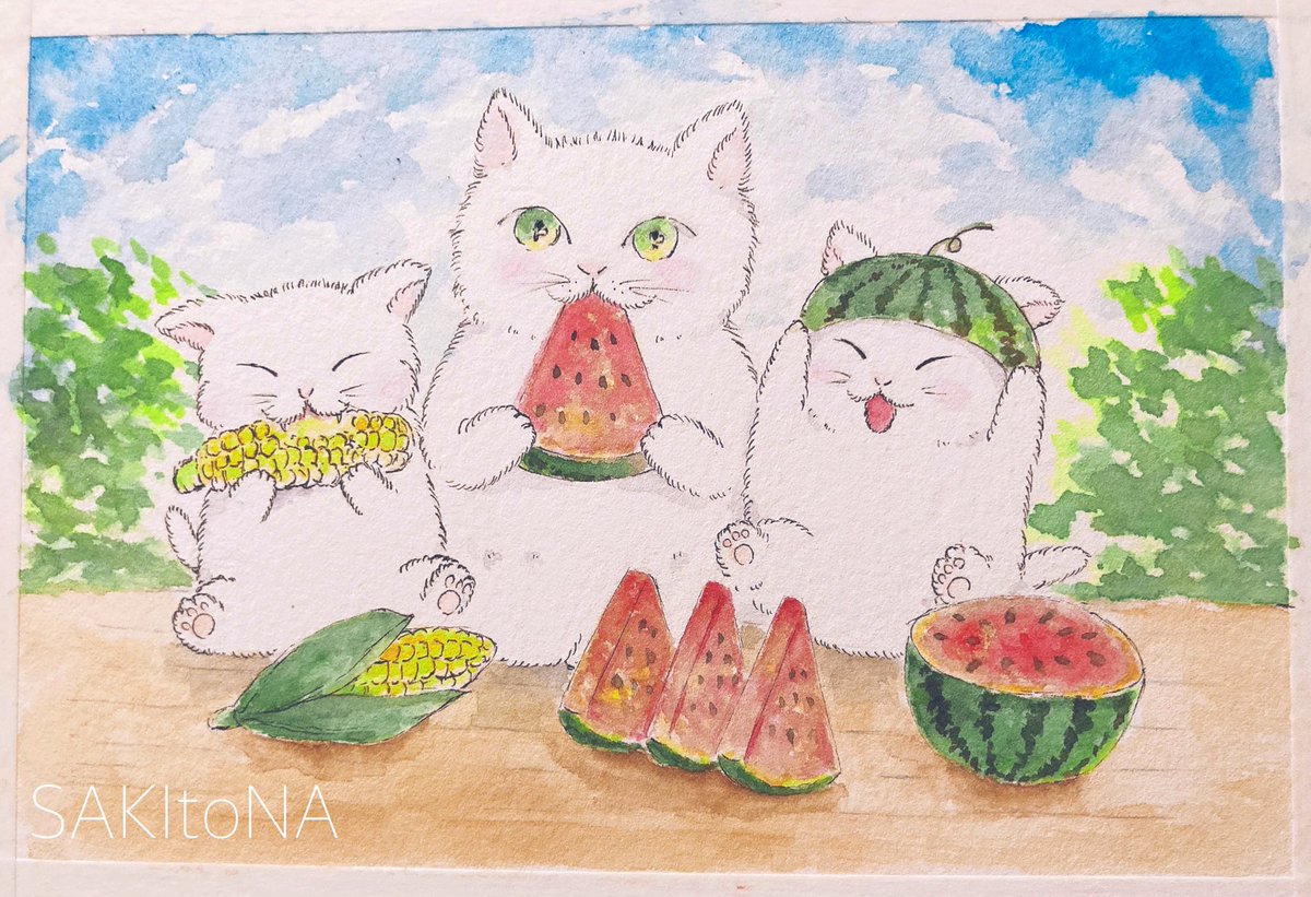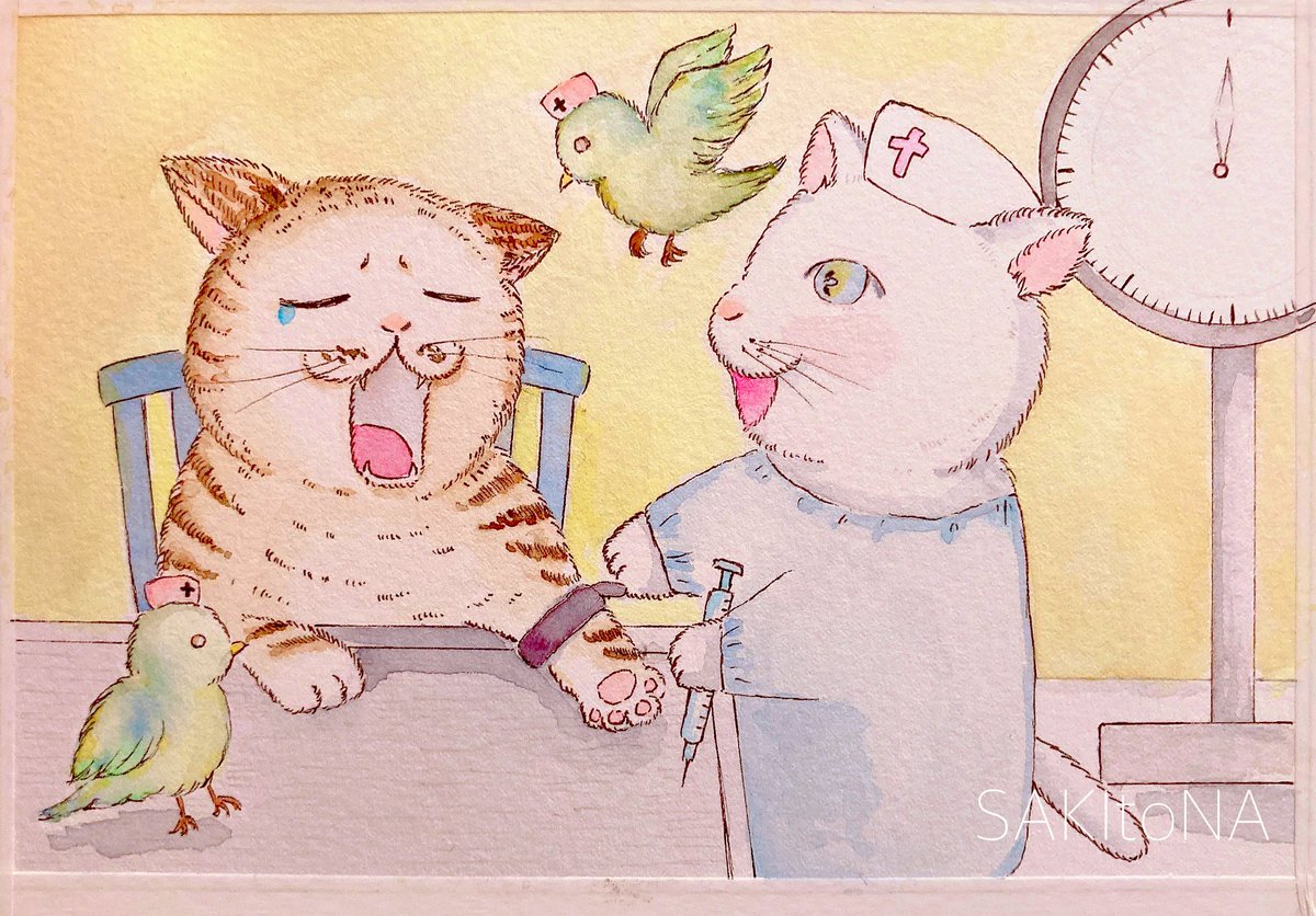 「注射いやだ...にゃ。」 昨日は健康診断でした! 注射は怖くない方なんですが、ここ数年倒れてしまうことがあって、採血はドキドキです😓 今回は看護師さん優しくて、体調も良好でした* #猫好きさんと繋がりたい #健康診断 #水彩