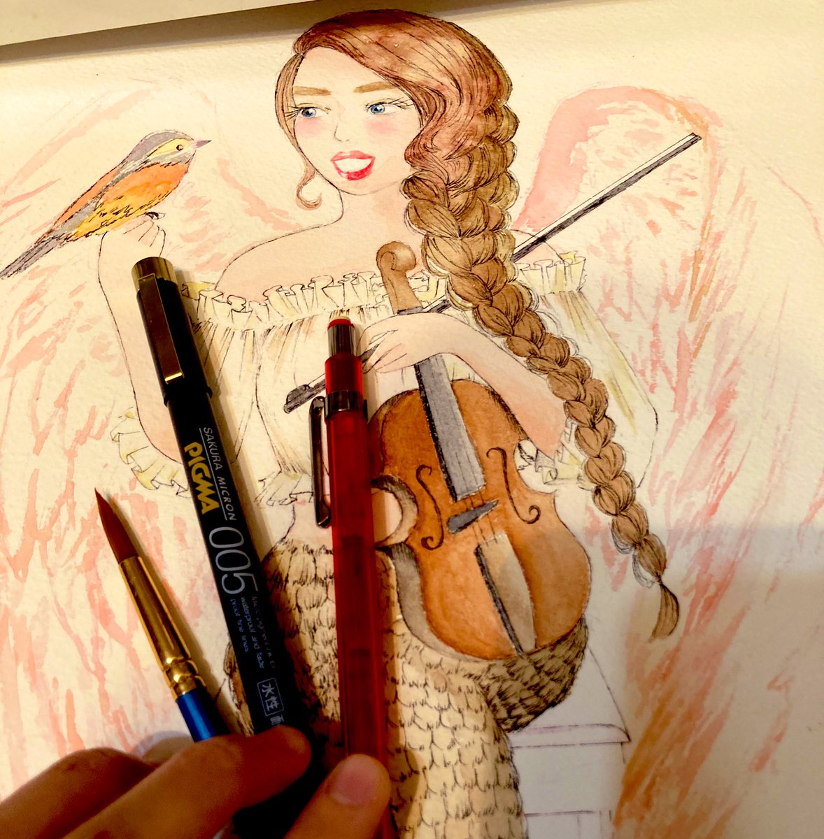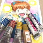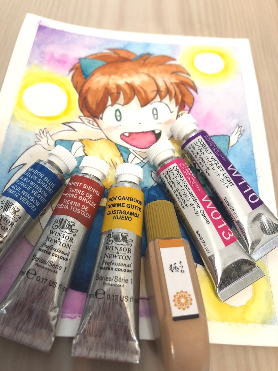今回お世話になった絵の具は。 #ウィンザーアンドニュートン #ホルベイン #和の色 皆様、素晴らしい絵の具です*☾ #犬夜叉かふぇ 行きたいなぁ(´・ω・`) 小中高全て犬夜叉だった私、七宝描いてみました* #犬夜叉ファンアート #水彩画 #七宝ちゃん